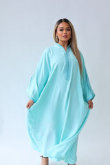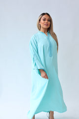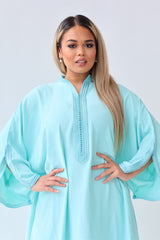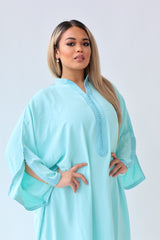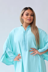 This refined gandoura, made from soft crepe fabric, blends with a modern touch. The sfifa details and open sleeves give it an elegant, timeless look.